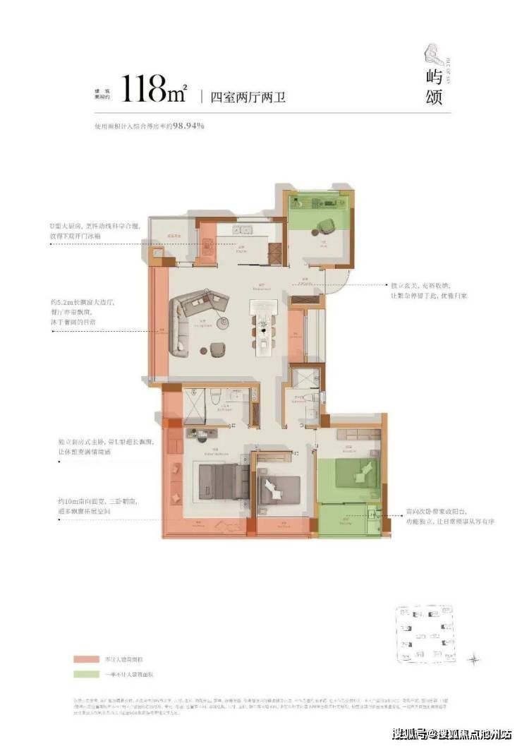 建面约118方四房户型: