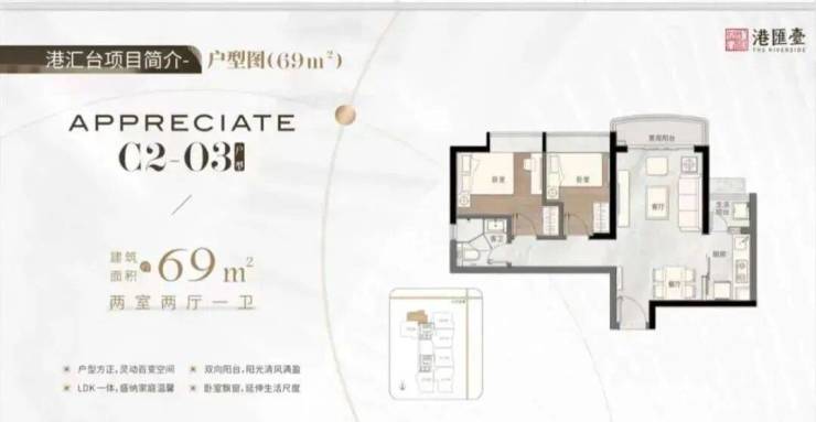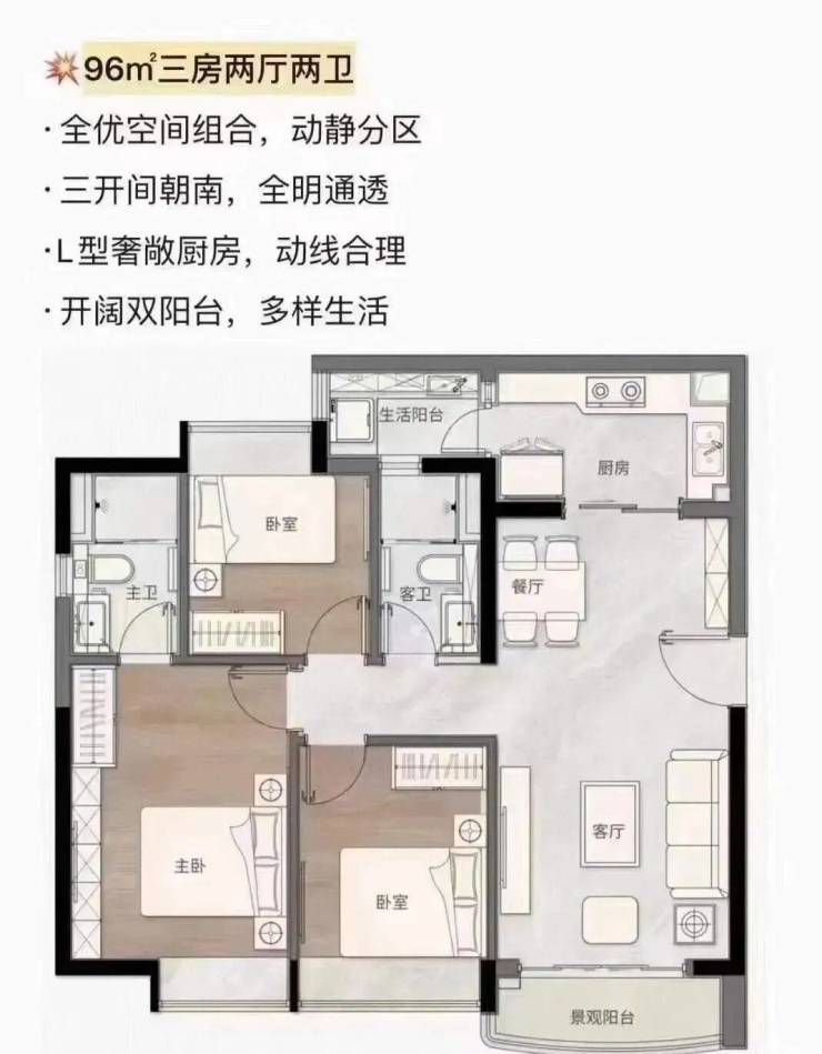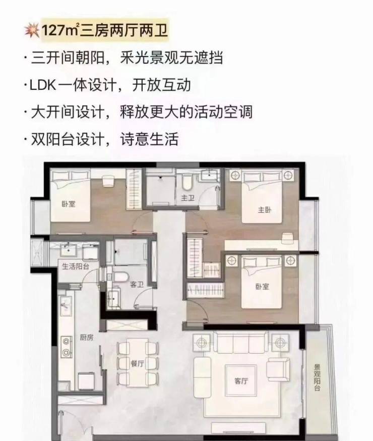 ·人居典范 精质户型顶尖设计团队,匠造建面约69-144m²臻美二至四房,户户双阳台,LDK一体设计,东南向望江赏景,科学布局动静分区,双入户大堂,配备星级五层地库,造就理想生活。