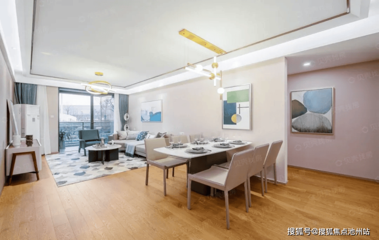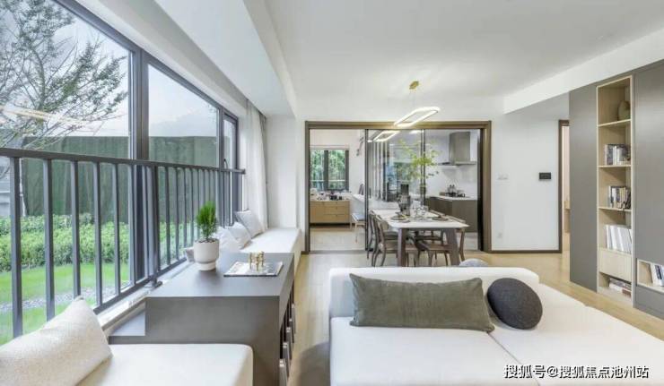 打破传统客厅格局。形成家庭厅、大飘窗、就餐区、多功能间相互围合的“剧场式公区”,形成更多元的场景切换。