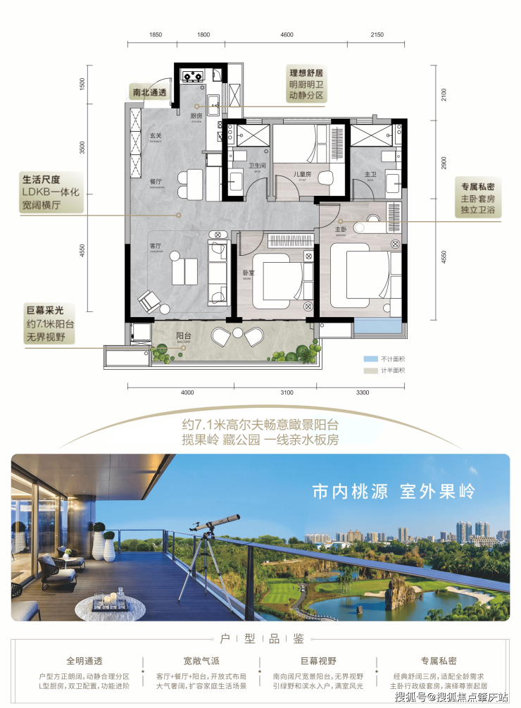 约4米客厅面宽、约7.1米宽景阳台、主卧套房设计等亮点倾心