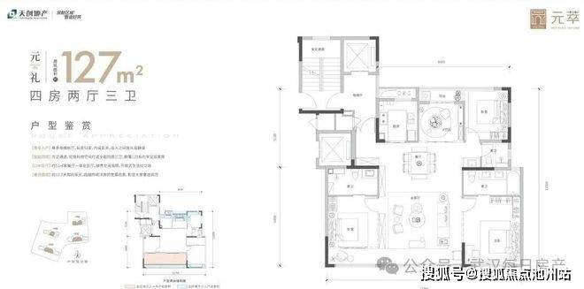 4栋楼中都有127平的户型,数量是目前已公示的三个户型中最多的,并且绝对面积不大,总价门槛会相对另外两个户型低一些,算是武昌下半年相对较少的小面积产品。