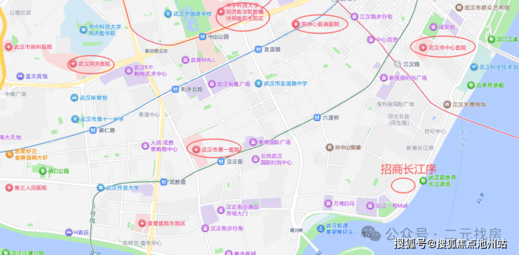 医疗配套:距离三甲医院武汉市第一医院(利济路院区)约2.2公里,距离三甲医院武汉市中心医院南京路院区约1.5公里,距离协和医院也就2.8公里,距离同济医院也就3.3公里,开车全程大约15-50分钟以内。