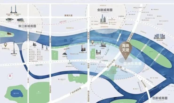 海珠琶洲位于“一江两岸”黄金水岸精华段,既承接广州城市现代的中轴线,又作为广州科技创新轴的国家战略主阵地,与珠江新城CBD、金融城CBD构成广州发展黄金三角,接棒规划发展广州核心的第二CBD发展板块。