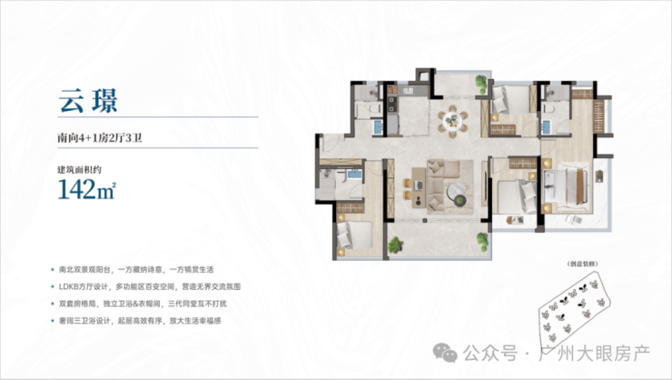 点式布局:点式布局区别于围合式布局,使楼栋享受最大采光,同时增加各户型的私密性,楼栋错落有致分布,提升舒适性;