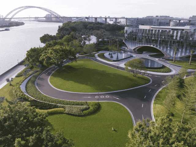 不仅如此,在约7米抬高式盖板之上,项目还打造约7米架空层,形成了14米的高度差。