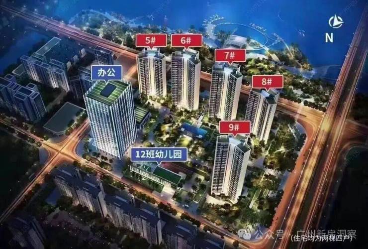 规划建设5栋;23-30层高的住宅楼,1栋23层高的办公楼、1栋3层高的公建配套以及12班幼儿园组合而成。
