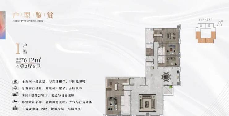 如果说产品力是决定资产高度的先决条件,那么服务力便赋予了资产更多的温度,广州城投·天赋壹号以对话世界湾区的资产态度与第一太平戴维斯、中国金钥匙联盟合力打造高端物业体验。实现“国企物业”与“金牌顾问”的强强联袂,以铂金物业管家团队为高净值人群带来24小时定制化服务,持续构建高阶至雅体验。
