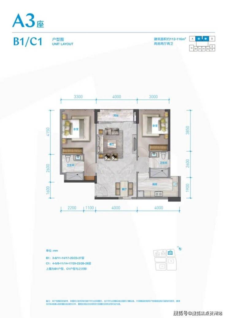 面积:240-320㎡四房三厅双套间;