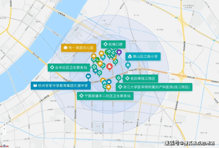 直线3km范围内有41个幼儿园;9个小学,如杭州市崇文世纪城实验学校、萧山区世纪实验小学、萧山区江南小学、萧山信息港小学、杭州市奥体实验小学等;7个中学,如杭州学军中学教育集团文渊中学、杭州第二中学钱江学校、杭州学军中学教育集团萧山区文渊实验学校、萧山区江南初级中学、万向中学等。