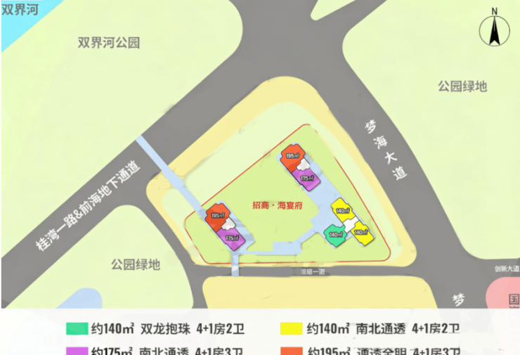 项目旁边就是双界河,生态环境好;周边1.3公里【前海公园】,1.9公里【前海石公园】