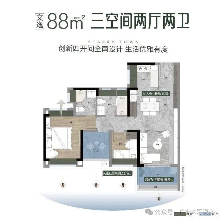 ·双面宽观景阳台,南北满飘窗,实用率超高