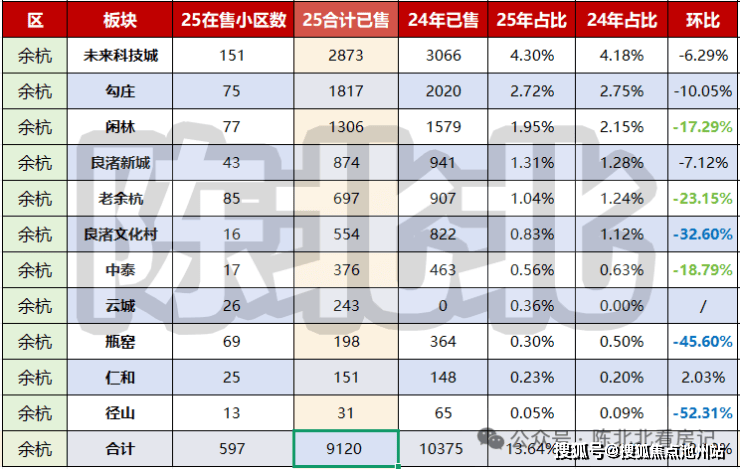 b. 余杭区11个板块中,25年排2位,24年排2位