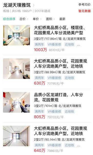 目前江桥的次新房小区,挂牌价格已经站上8字头,就是龙湖在江桥的第一个项目,龙湖天璞。