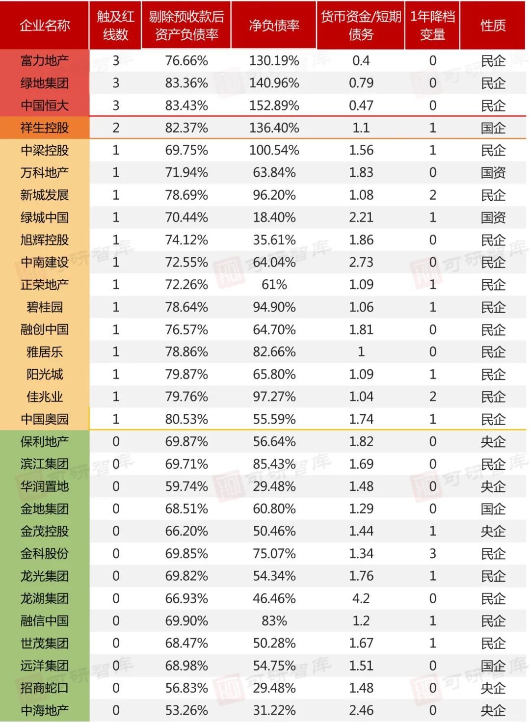 三道红线标准:富力、绿地、恒大全踩线