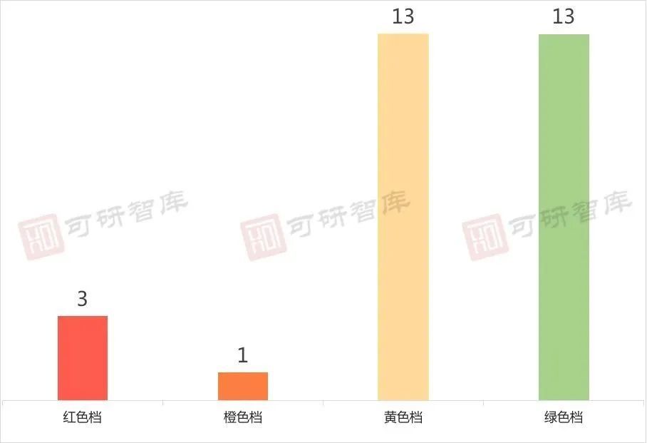 30家房企中,3红1橙13黄13绿