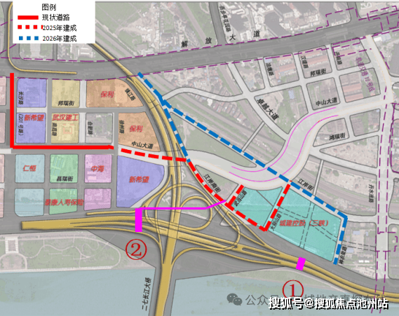 其中,6条市政道路涵盖北侧的江岸街接入解放大道、西南侧的江岸南街接入中山大道,武当山路和大别山路接入江岸南街,以及沿江大道扩宽改造等。未来,将实现江景与城心“一脚油门直达”。