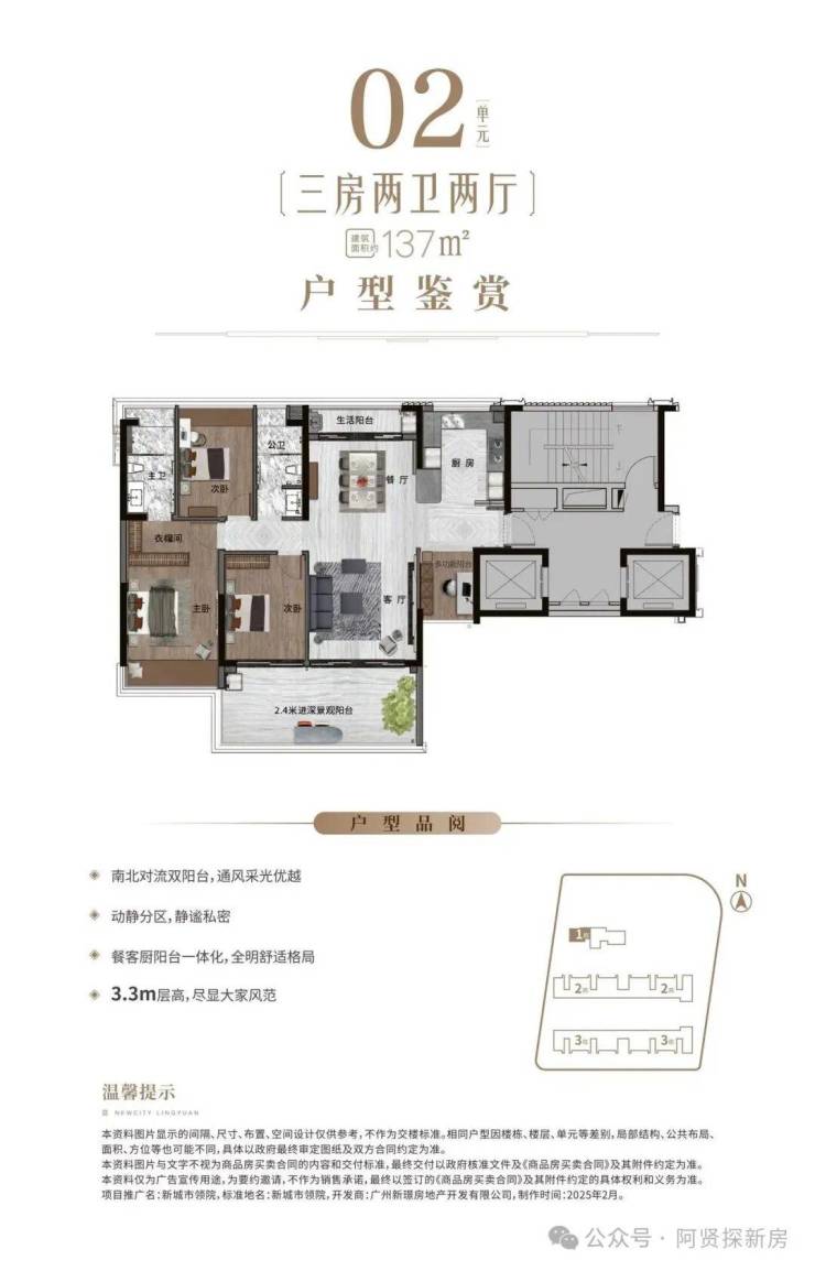 ◎02户型:建筑面积约137㎡舒阔三房。🧙新城市领院售楼处电话:4009620133(售楼处官方认证|无中介|24小时1对1咨询|购房全流程协助)