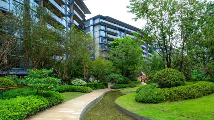 合景臻颐府享有得天独厚的自然环境优势,小区南依自然山体,北望月亮湖,项目融合了生态健康、自然山体、禅意园林、智慧人居等打造畔山禅意墅质大宅。