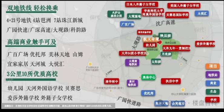教育——自身配建6班幼儿园;周边有广州奥林匹克中学、越秀观樾配建24班小学,缦云广州配建的九年制学校(18班小学+27班中学)等多所高质量学校;