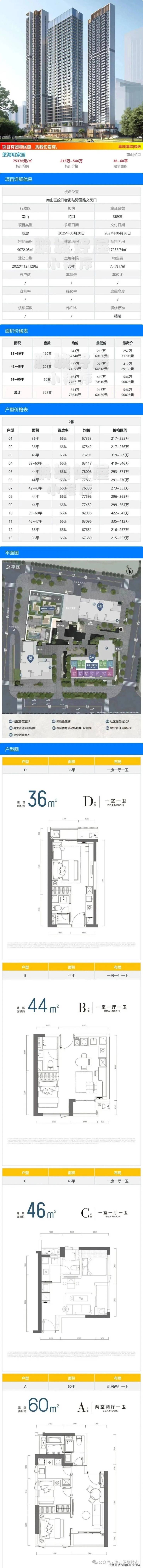南山蛇口招商望海玥家园推出部分工抵房,单价最低5万/㎡左右。