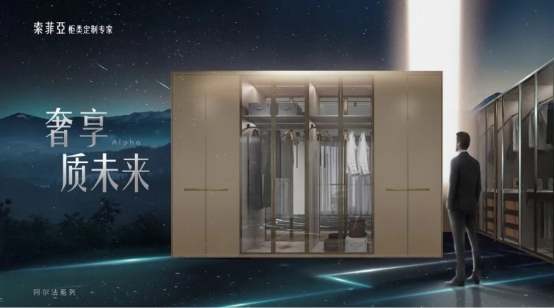 索菲亚从家居产品开始,用智能制造唤醒人们对未来家居空间的想象,比如,年轻人喜欢的未来感家居——阿尔法系列,用具有未来感的工艺、材质、花色,助力打造未来感科技家居。索菲亚采用现代科技,打造50微米柔光黑科技,使用德国铝粉,在产品表面形成50μm的超薄电镀层,令生活闪耀非凡。产品设计团队仿照达·芬奇《蒙娜丽莎的微笑》“晕涂法”,创新采用全球特殊5次晕涂印刷技术,让家居产品获得凹凸逼真的金属拉丝层次质感。阿尔法还专属的钛古金花色,科幻电影般的高级感,营造空间具有视觉冲击的科技感。