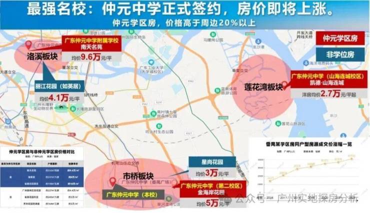 项目自带九年一贯制仲元中学(公立),是一所72班中小学,涵盖24班小学和48班初中,2025年9月已开学,业主子女优先入读。该校高优率81.5%,本科率超95%,属番禺顶尖教育资源,解决家长核心教育焦虑。社区内共5所学校(2幼儿园+2小学+1中学),实现12年“目送式”教育。