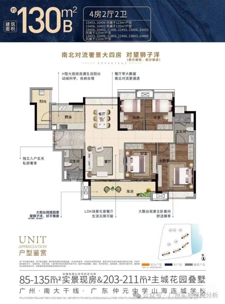 项目位于番禺莲花湾板块,属于番禺东石楼镇,南大干线边上,小区旁边就是狮子洋,部分户型在家就能看到海景。