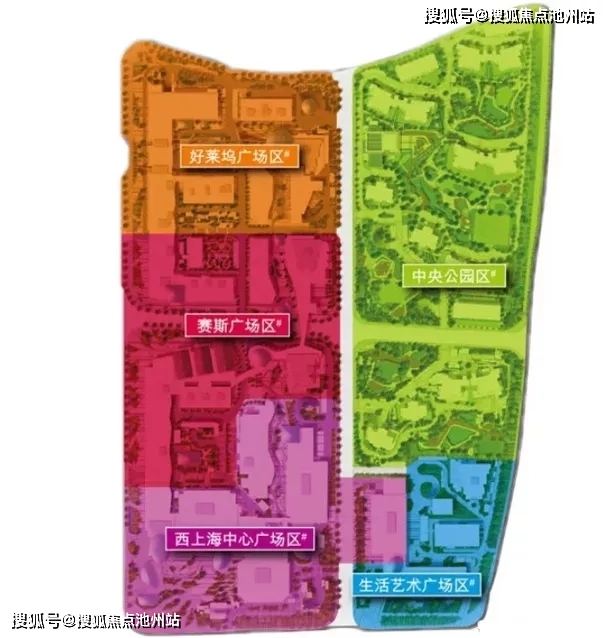 整个高尚领域划分成五大多元化生活主题:以住宅为主的中央公园生活区、提供娱乐设施的好莱坞广场区、设特色餐饮的赛斯广场区、设甲级商厦和星级酒店的西上海中心广场区,及适宜摆放现代艺术品的生活艺术广场区。