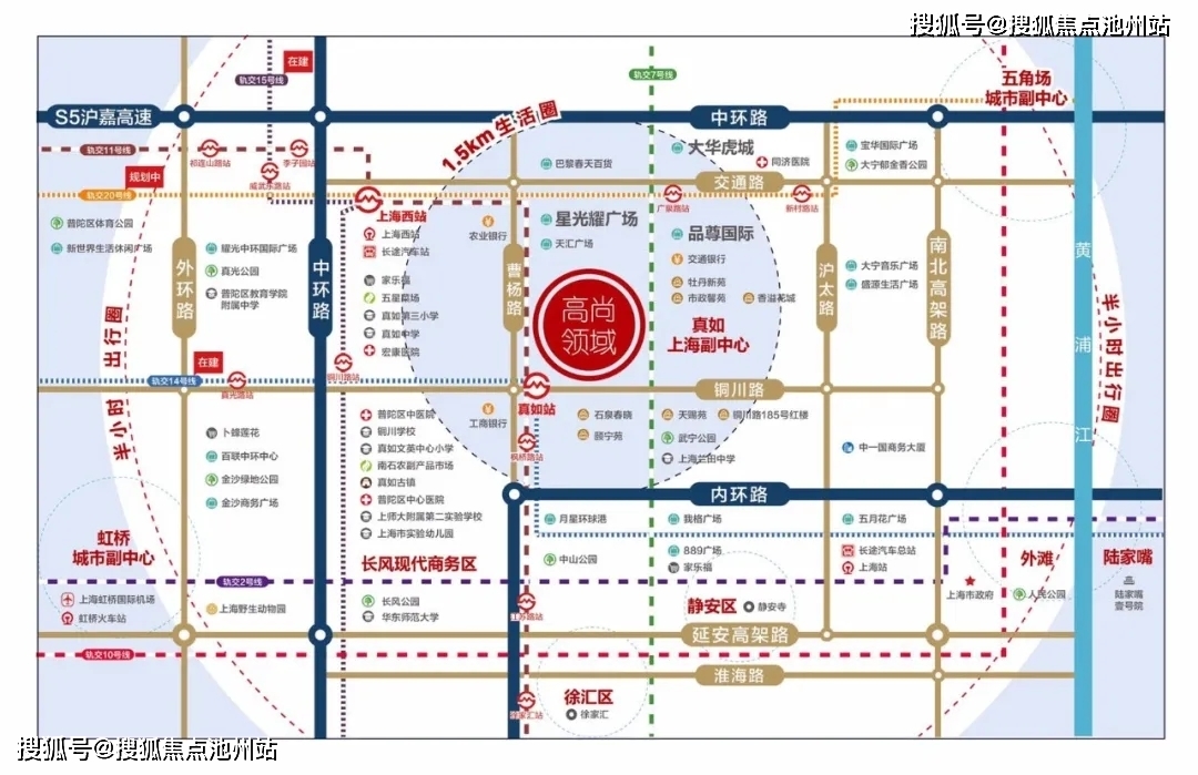 高尚领域是长江实业集团于上海打造的排名前列大型综合体项目,位处真如副中心的核心位置。占地约17万平方米,总建筑面积逾117万平米,是目前上海中环内在建中规模较大的城市综合体。