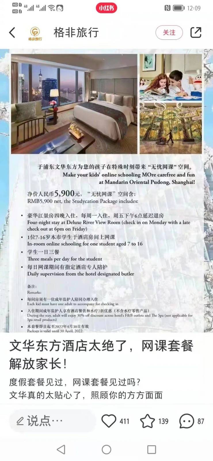 近期,上海一家酒店便推出一款叫做“无忧网课空间”的套餐,声称还有专人陪护孩子“无忧”上网课。