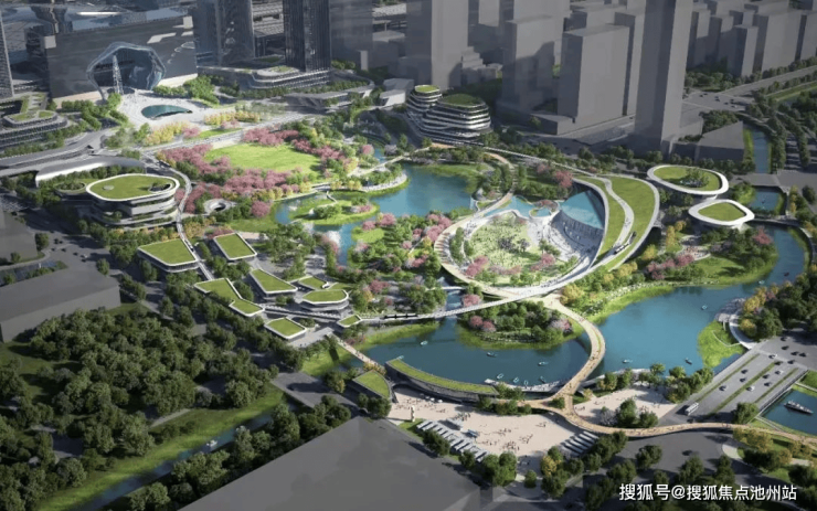 项目规划了多处不同形态的景观水系,还有会客厅、儿童活动场地以及开阔的草坪空间,打造轻盈且灵动的园区生活场景。
