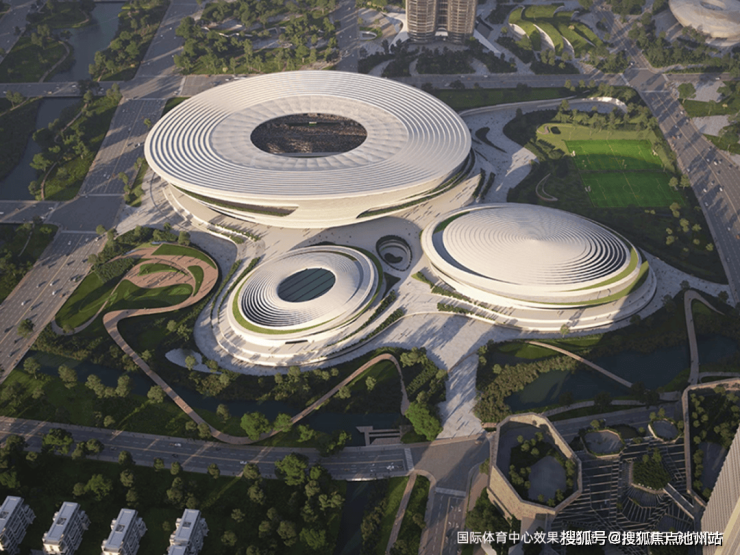 国际体育中心位于中轴线西侧,将打造成为满足“国际赛事+全民运动+商业休闲”功能需求的一站式“国际体育中心”。包含60000座满足FIFA、19000座满足国际赛事标准的专业体育馆、3000座游泳跳水馆。