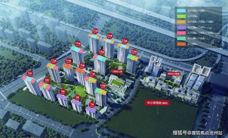 建发·云城之上规划16幢小高层➕高层住宅,包含1幢11F、2幢17F、3幢25F、10幢26F,以及5幢4-20F商业办公楼和1座幼儿园。