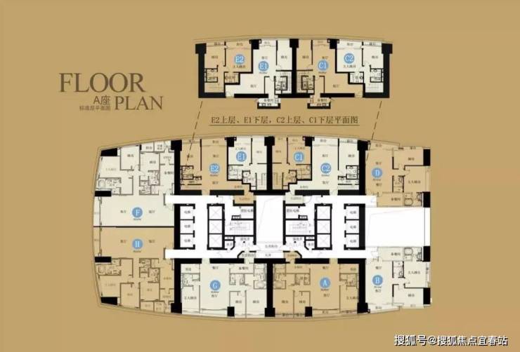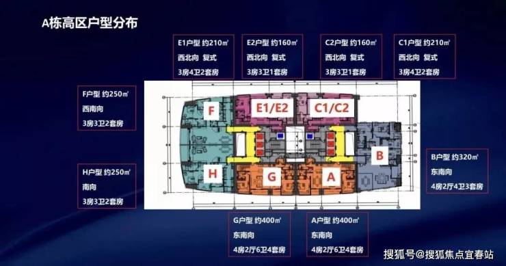 A座48层C2单位,建面约210㎡,3房2厅4卫3套房