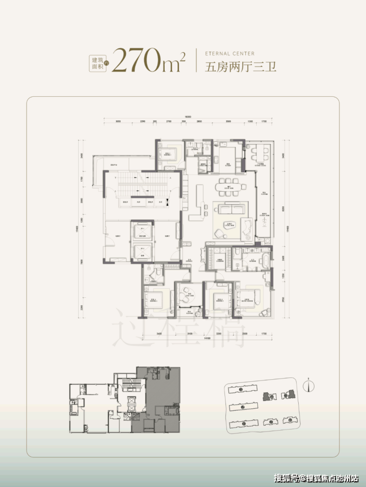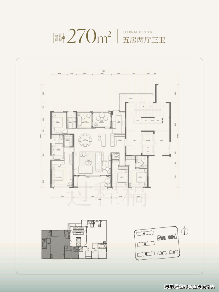 北侧两幢还有两款建面约270㎡五房两厅三卫的南厅/边厅户型可选。