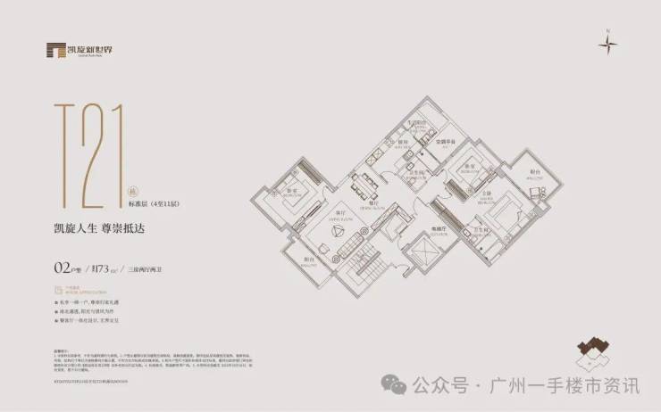 凯旋新世界三期广粤尊府将推出少量T17、T18、T21等楼栋住宅,三期T17和T18栋是广粤尊府楼王级别产品,大面积户型头排一览珠江无敌景观视野,如此顶豪可满足广州高净值人士的居住需求。