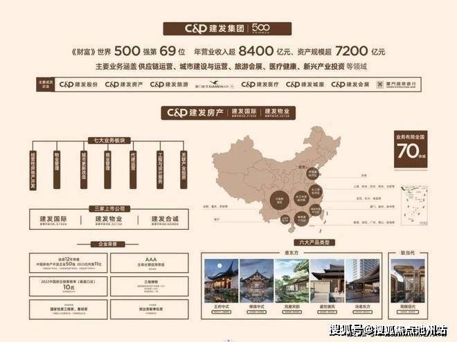 建发集团,成立于1980年,2023年《财富》世界500强排名第69位,主要业务涵盖供应链运营、城市建设与运营、旅游会展、医疗健康、新兴产业投资等领域,集团年营业收入超8400亿元,资产规模超7200亿元。建发地产,连续13年获得“中国房地产开发企业50强”,成立40余载业务遍及全国70余城。