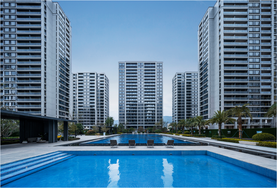 绿城并不满足于此,在柳岸晓风社区中心,“拔掉”两栋楼,腾出空间打造一个2.1万方景观园林和600平天幕泳池。