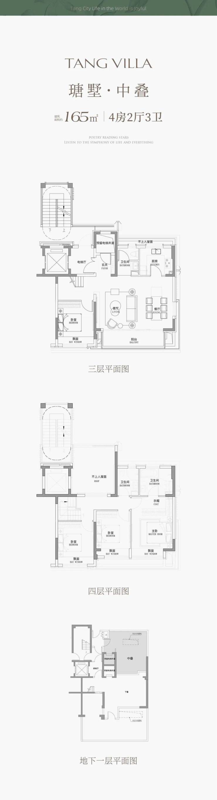 3-4层中叠,建筑面积约165㎡