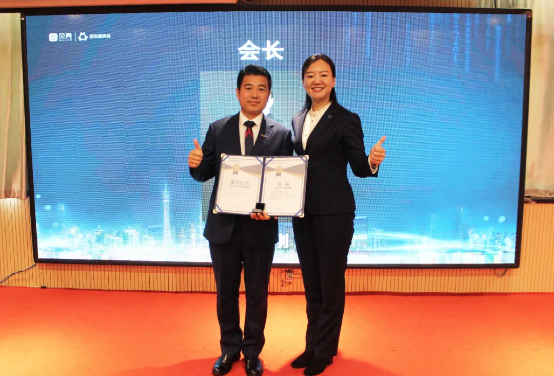 经过现场所有店委投票决定,张绪刚以较高票数当选本届店委会会长,链家张继森、德佑姬鹏、21世纪潘政、链家米磊当选本届店委会的小组组长,高总为他们颁发了委任证书和店委会徽章。