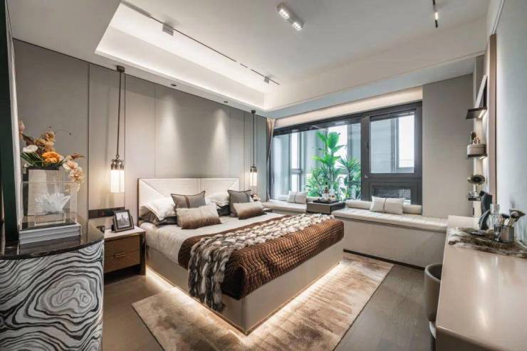 项目主力户型呈现三大创新特点:一是99㎡三房两卫的"神户型",通过U型厨房设计和飘窗改造,实现得房率78%;二是143㎡四房采用LDKB一体化设计,配备约6.8米宽景阳台;三是170㎡楼王户型创新设计出独立家政间和双主卧套间。精装标准方面,配备日立中央空调、兰舍新风系统、唯宝卫浴等国际品牌,特别采用同层排水系统和全屋净水软水系统。值得关注的是,项目所有户型均实现南向三面宽(99㎡户型面宽达10.2米),卧室全部设置飘窗并预留改造空间。
