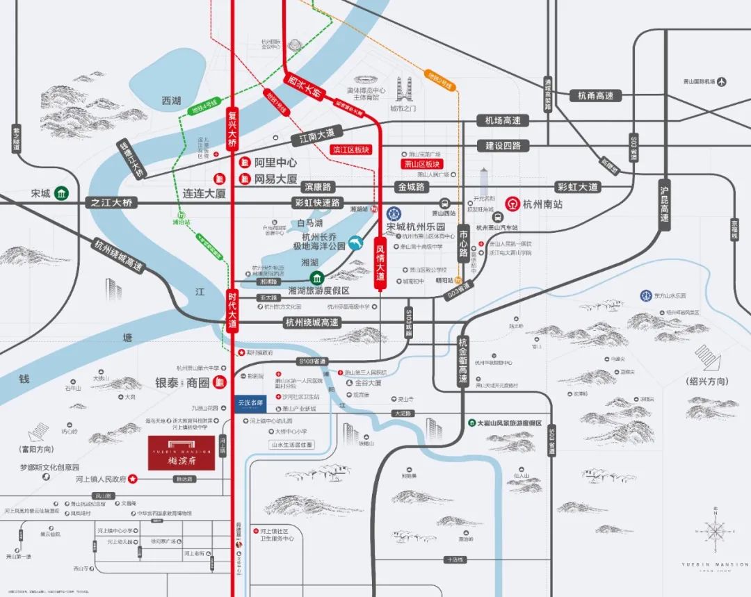 而樾滨府边上的时代大道就是交通便利的具象化体现。北接复兴大桥,与中河上塘高架共同构成杭州的“四中五横”快速路网中的“一纵”。
