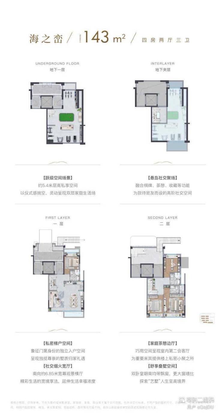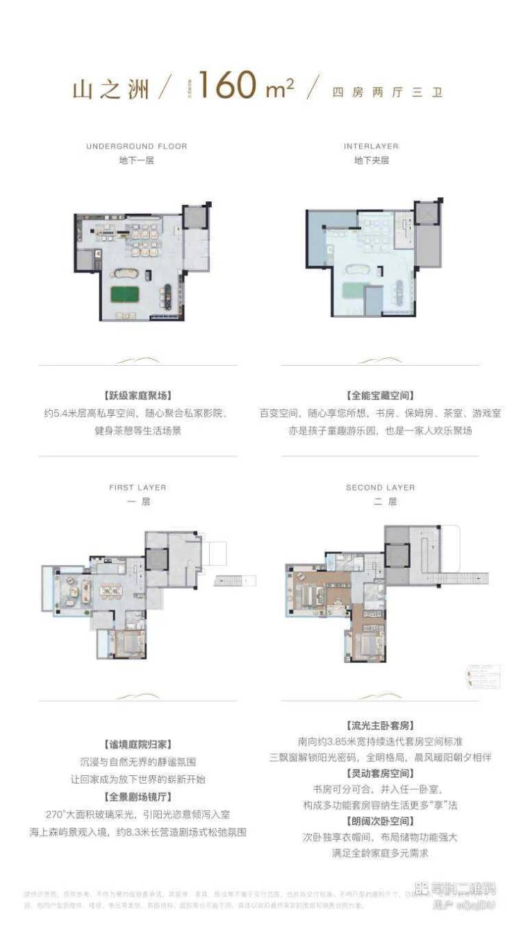 地下一层:约5.4米层高私享空间,随心聚合私家影院、健身茶憩等生活场景