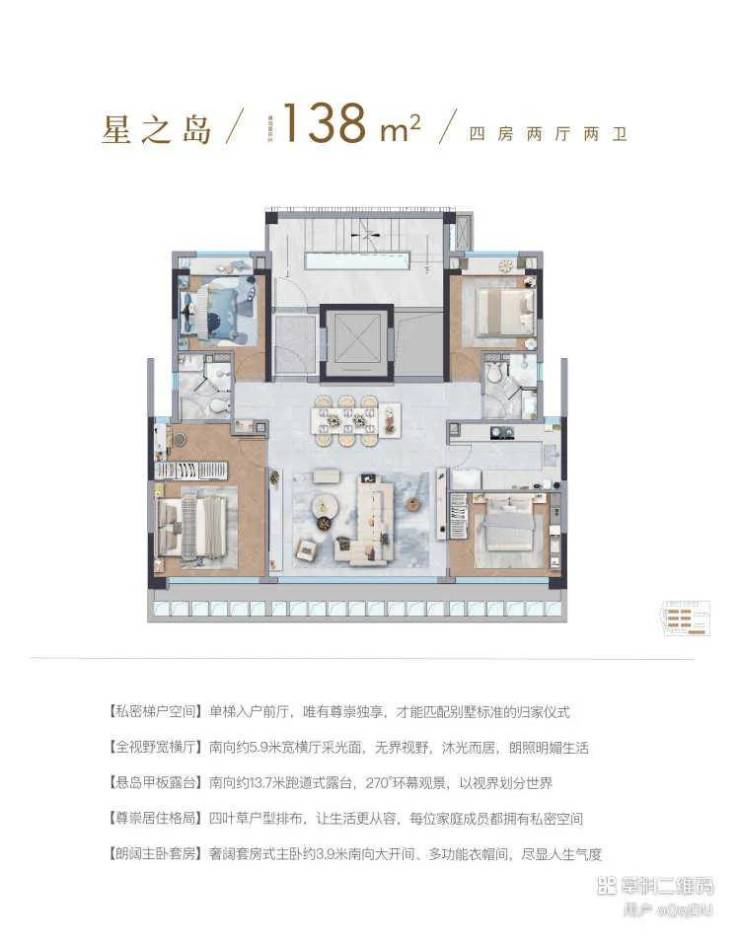 四叶草户型排布,让生活更从容,每位家庭成员都拥有私密空间