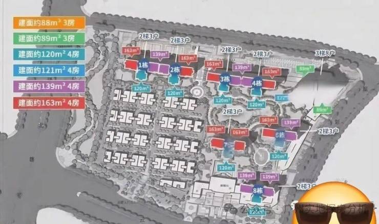 高层洋房:主力户型为120㎡、139㎡、163㎡的4房户型,适合改善型购房者;另有少量86㎡、89㎡的3房户型,适合刚需购房者。