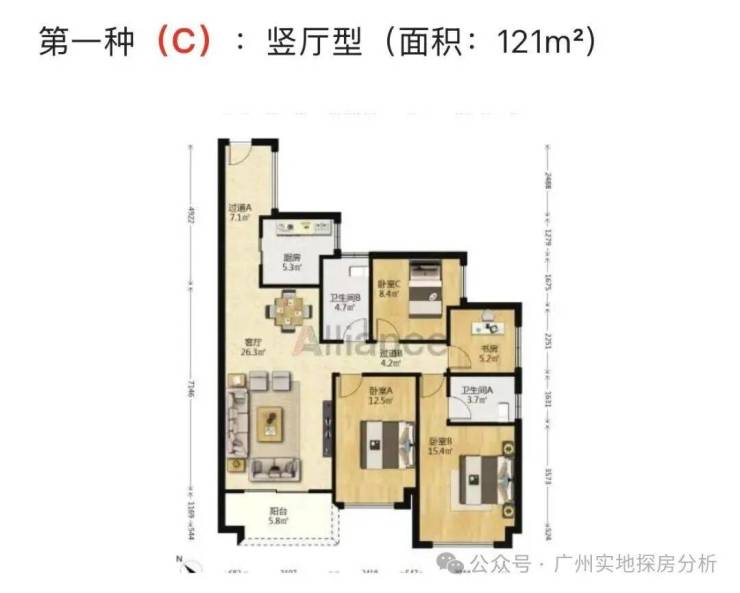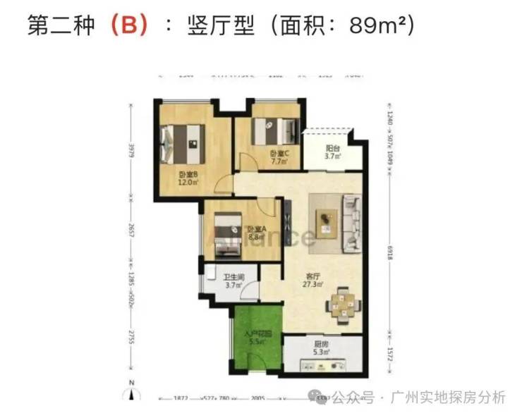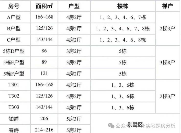 产品:5栋是三梯八户,86㎡和89㎡的小三房,除5栋外,其他高层洋房为121㎡、143㎡和166㎡的4房户型,别墅户型主要有206㎡~216㎡的户型。