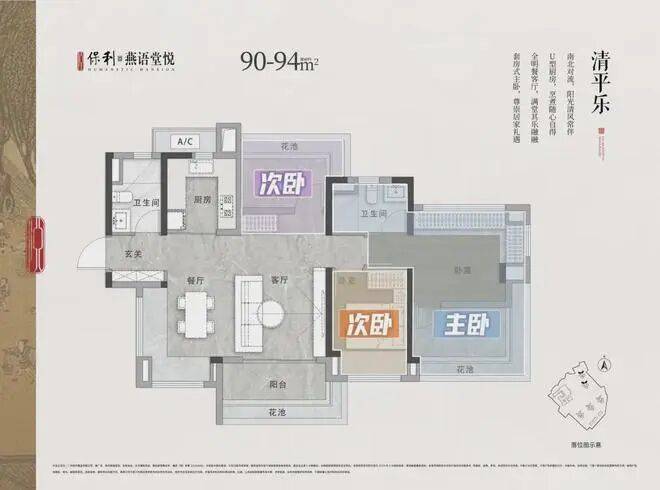 项目推出90-125㎡的三至四房户型,合理布局,兼顾采光与通风,适应不同家庭需求: