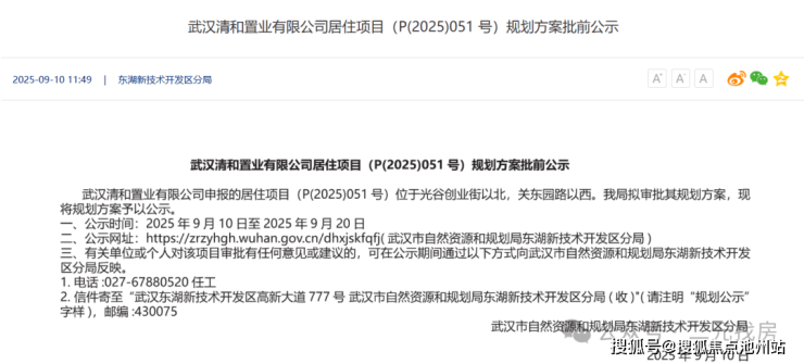 2025年9月10日,武汉清和置业有限公司(湖北清能集团)申报了“P(2025)051号”地块的住宅项目规划方案。