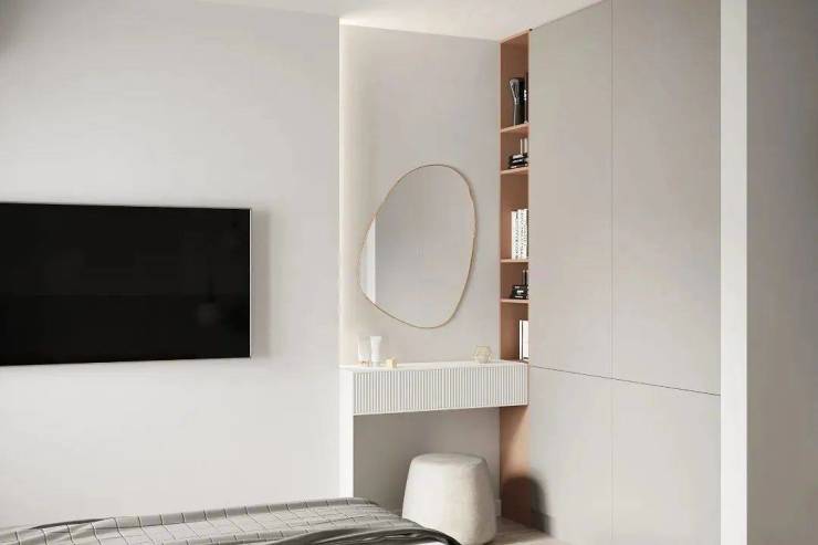 梳妆台是保持美美哒的秘诀之一,衣柜与梳妆台的结合,不仅有效利用空间,还能让空间更具整体性,清新衣柜与梳妆台搭配,淡雅清爽的颜色舒适高级,同时也装点了房间。