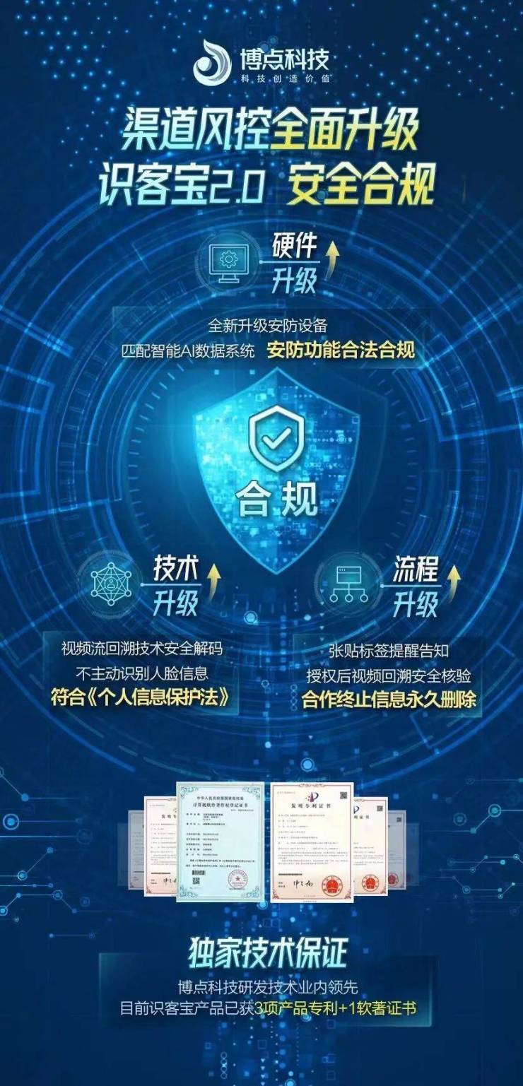 原来,博点科技早在《个人信息保护法》征求意见阶段,就率先着手进行渠道风控产品的迭代升级,推出了“识客宝2.0”, 既能合法合规地对来访、认证、飞单、节佣情况实时监控,又能一键上传结佣单智能判断渠道风险。